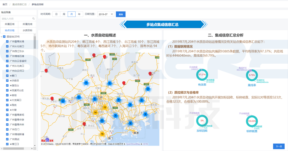 支持多自動監(jiān)測站點(diǎn)的聯(lián)網(wǎng)率統(tǒng)計(jì)、質(zhì)控頻率與考核率等環(huán)境監(jiān)測站重點(diǎn)關(guān)注指標(biāo)的集成信息匯總。